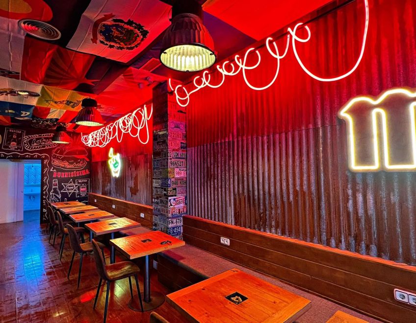 El restaurante era una pasada, la decoración increíble, y el servicio era muy amable y atento. Los entrantes son abundantes y las hamburguesas son una locura, además el postre está bien de bueno.