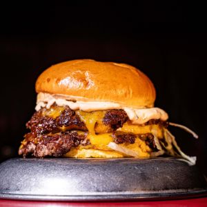 Pan brioche casero, doble patty de carne de vaca y queso cheddar, lechuga en juliana, todo ello acompañado de la salsa burger más famosa del mundo que contiene pepinillo y cebolla.