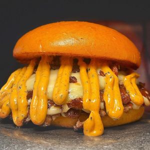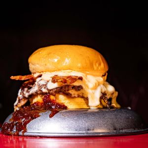 Nuestro pan brioche casero con 2 smash burger de carne de vaca, pepinillos y mac & cheese cayendo por todos los lados. ¡Una combinación irresistible!